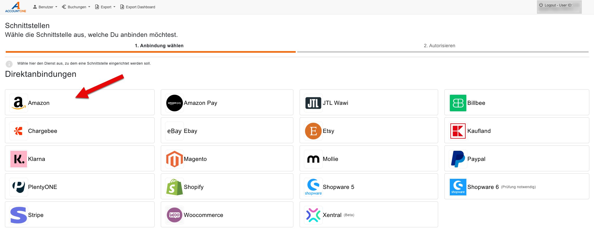 Schritt 2 - Amazon auswählen